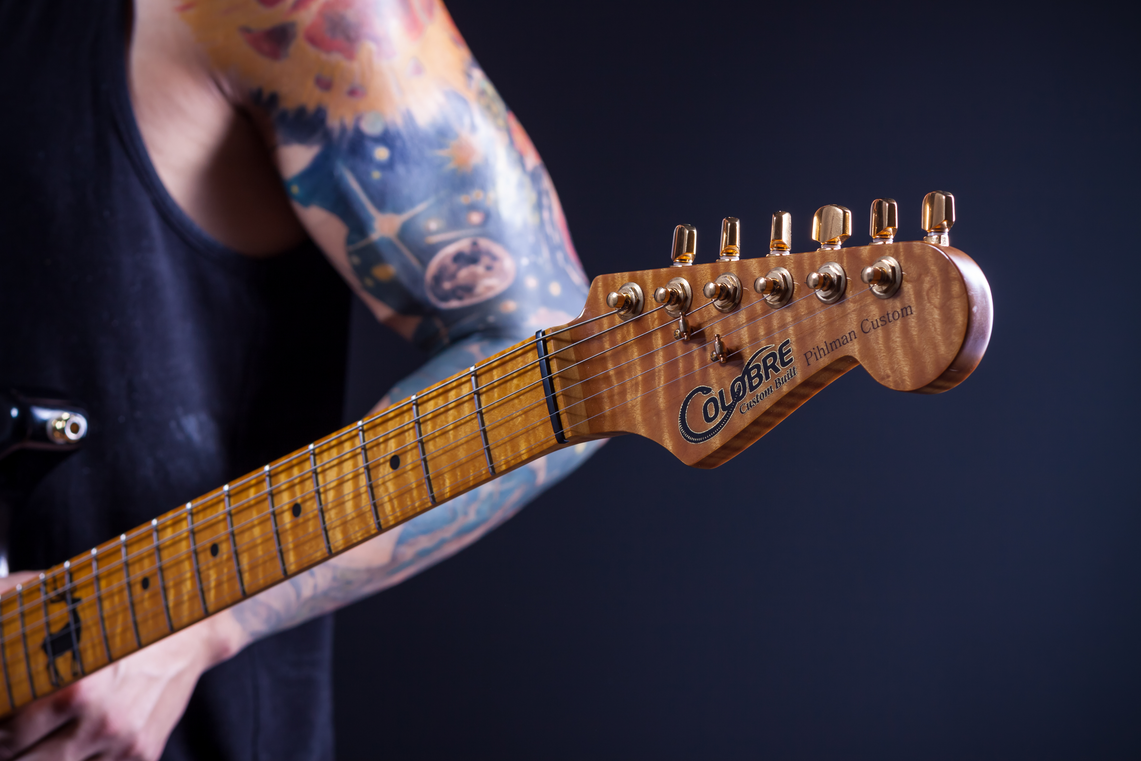 Sesión fotográfica de hace ya unos añitos con Jani Pihlman, guitarrista y productor, y su guitarra, una preciosa Colobre Custom (y ese inlay con un diseño mío <3).